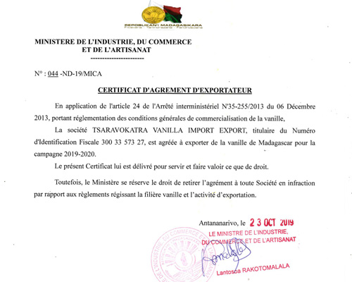 License to Trade in Madagascar Vanilla